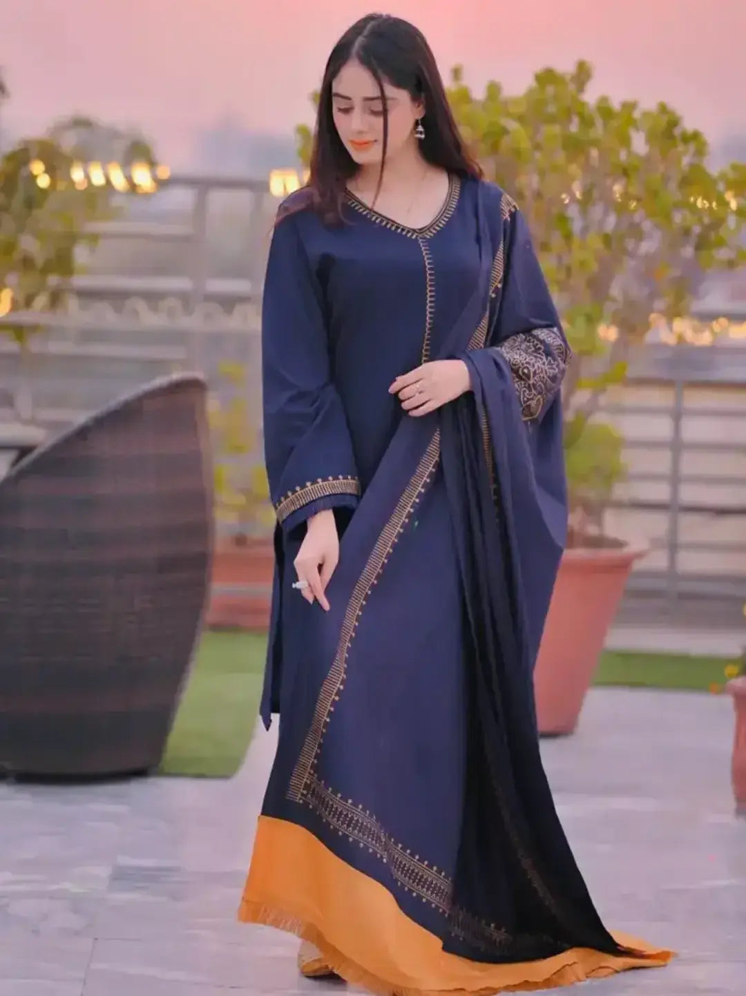 3Pc Unstitched Dhanak Suit ( Printed Woolen Dupatta )