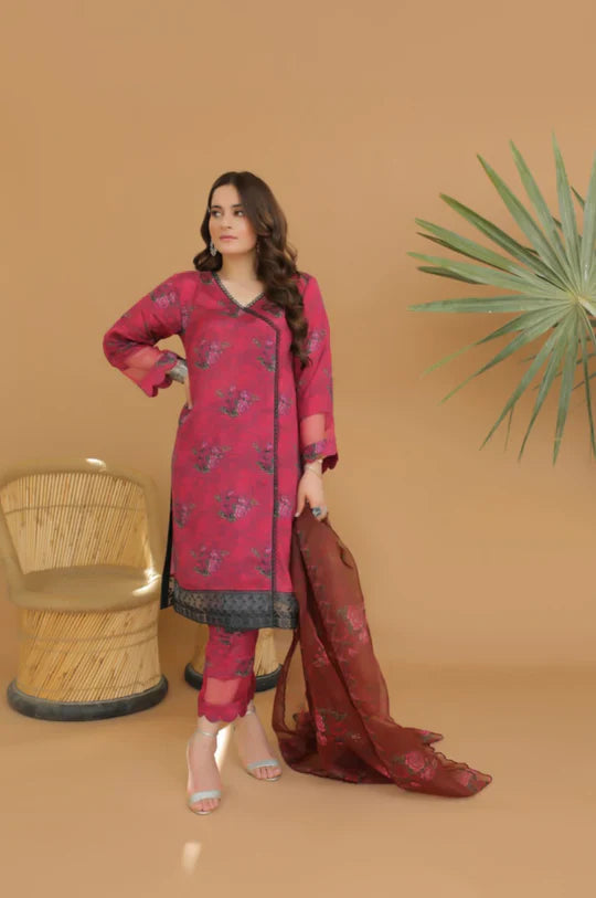 Aiman Minal Three Piece linen with Bember chifoon Dubata