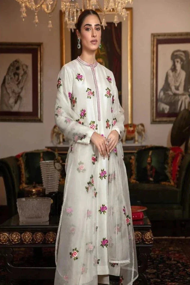 Unstitch 3pc Sahmooz Silk Fully Embroidered Suit With Organza Dupatta